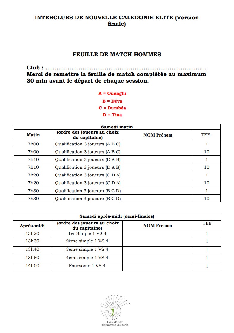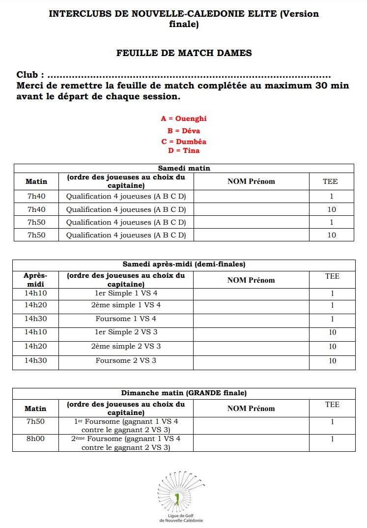 Les interclubs élites débarquent ce samedi 22 et dimanche 23 novembre au golf de Garden Golf de Dumbéa ! Les équipes sont prêtes et les feuilles de match aussi !